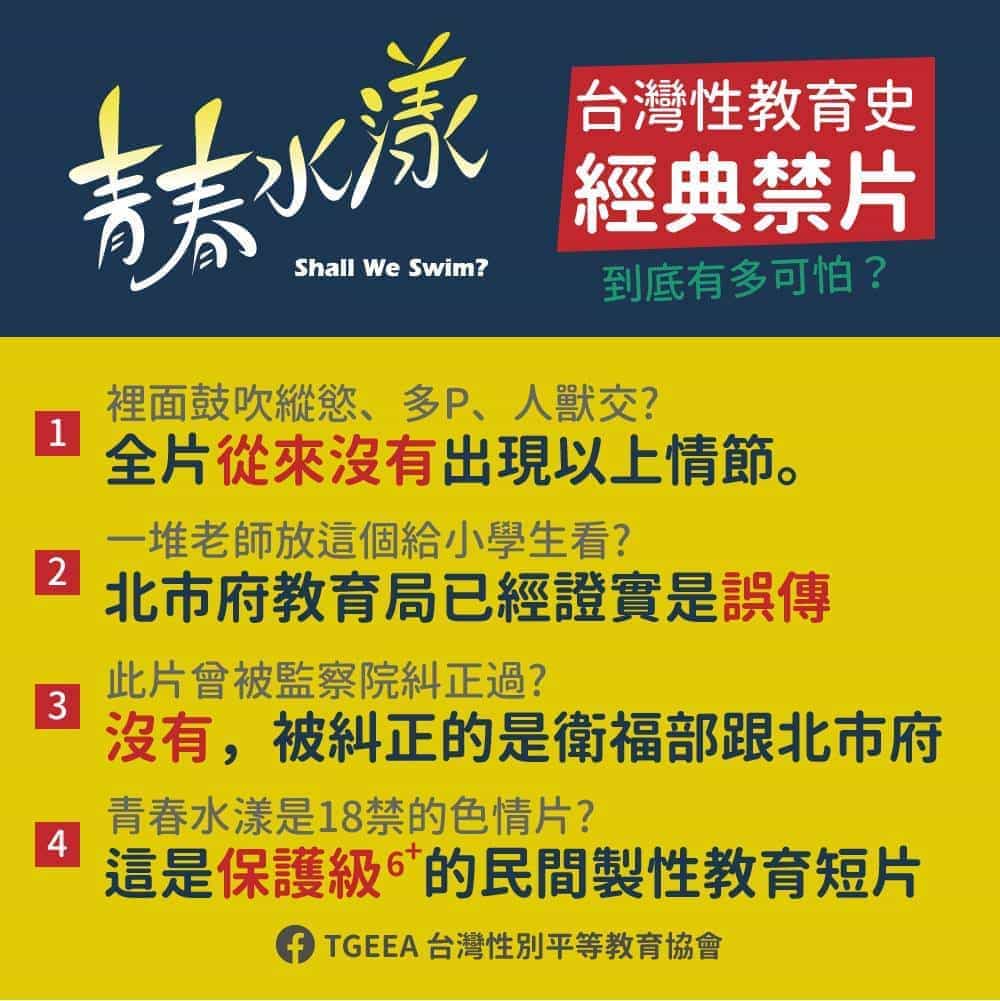 看完了這部「小」電影,雖然只有短短的三十分鐘,但也確實是我們青少年有可能會遇到的。像雅若從游泳池的出水孔感受到「舒服」的感覺,又在游泳池認識了小康,起初小康只是教雅若游泳,後來又進一步的交往。兩人從懵懂想要探索慾望,找出身體的秘密開關、敏感帶。其中最令我印象深刻的是雅若的好友小蜜,為了要找出雅若的敏感帶,拿出她媽媽的「小金人」,把敏感帶用貼紙做記號,拿給她的男朋友小康,兩人正尋找身體開竅的開關。
